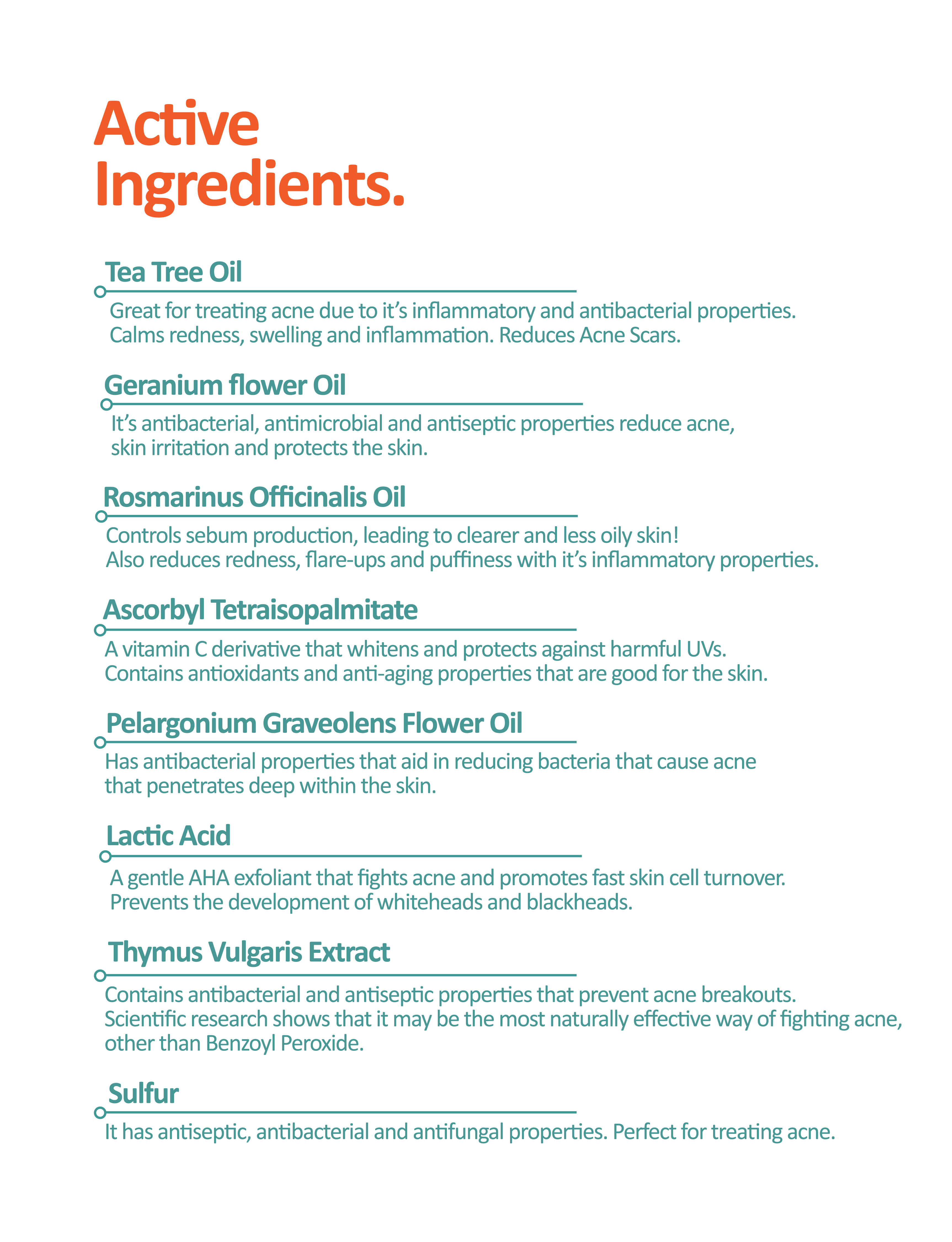 Specially formulated with high-quality essential oils and perfectly blended with other natural ingredients in one acne balm.